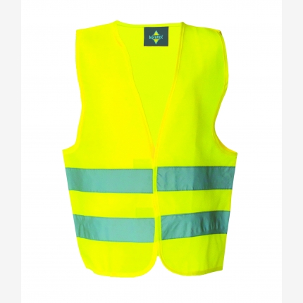 Kamizelka odblaskowa dla dzieci i młodzieży wykonana z wysokiej jakości materiału fluorescencyjnego z dodatkowymi dwoma poziomymi pasami odblaskowymi. Zapewnia wysoką widoczność dziecka oraz duży komfort użytkowania.