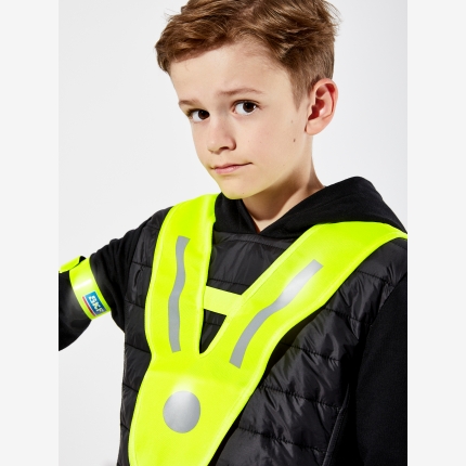 Kamizelka odblaskowa V-Vest idealna dla dzieci. Odblaskowe taśmy fluorescencyjne skutecznie zwiększą widoczność w trudnych warunkach atmosferycznych i po zmroku. Po zwinięciu szelki zajmują niewiele miejsca i można je szybko założyć, gdy są potrzebne. Szelki odblaskowe są wykonane z najlepszej jakości materiałów, dzięki czemu odbijają światło całą swoją powierzchnią odblaskową i pod każdym kątem.