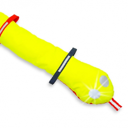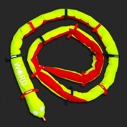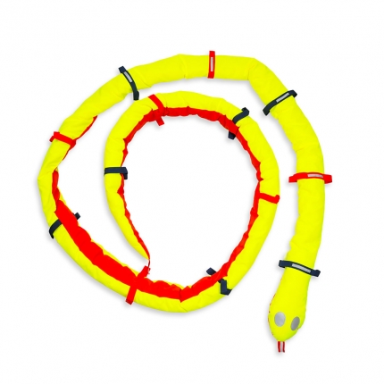 Na wężu znajdują się uchwyty wyposażone w paski odblaskowe ułatwiające dzieciom ustawienie się w parach.