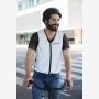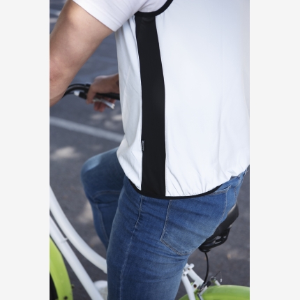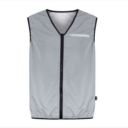 Kamizelka odblaskowa do noszenia w warunkach słabej widoczności. Czarne elastyczne obszycie. Przepuszczające powietrze boki. Kieszeń na piersi z zamkiem błyskawicznym. Miejsce na nadruk na klatce piersiowej i plecach. Zastosowanie: rekreacja, bieganie, jazda na rowerze. 100% poliestru.