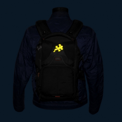 Odbija światło całą swoją powierzchnią. Przyklejona do plecaka sprawia, że dziecko jest widoczne dla kierowców już z 300 m.