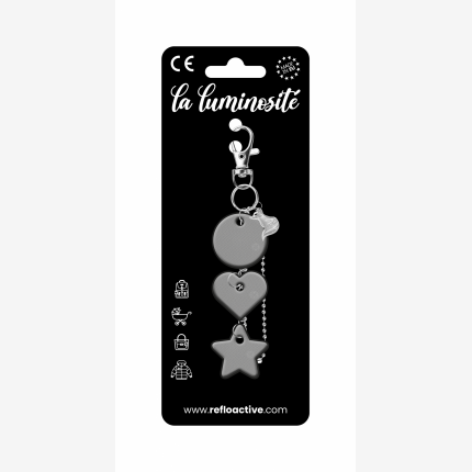 Odblaskowa zawieszka/brelok na torebkę - 3w1 - kółko/serce/gwiazdka z liskiem - czarne kółko