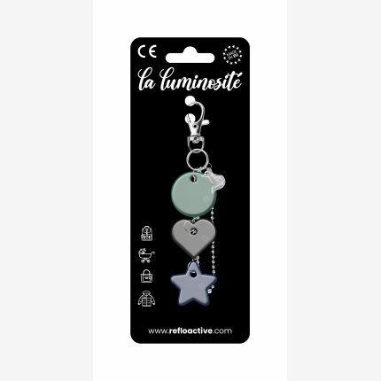 Odblaskowa zawieszka/brelok na torebkę - 3w1 - kółko/serce/gwiazdka z liskiem - zielone kółko