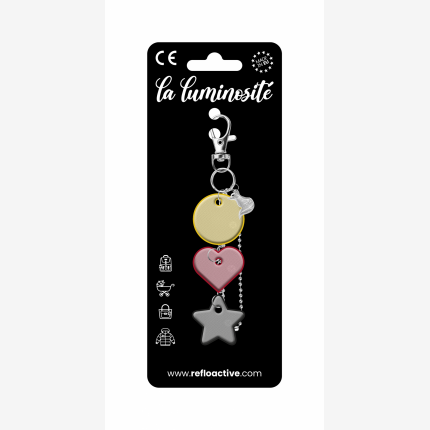 Odblaskowa zawieszka/brelok na torebkę - 3w1 - kółko/serce/gwiazdka z liskiem - żółte kółko