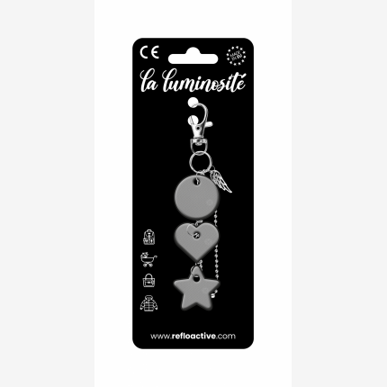 Odblaskowa zawieszka/brelok na torebkę - 3w1 - kółko/serce/gwiazdka ze skrzydełkiem - czarne kółko