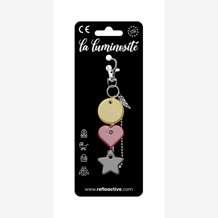 Odblaskowa zawieszka/brelok na torebkę - 3w1 - kółko/serce/gwiazdka ze skrzydełkiem - żółte kółko