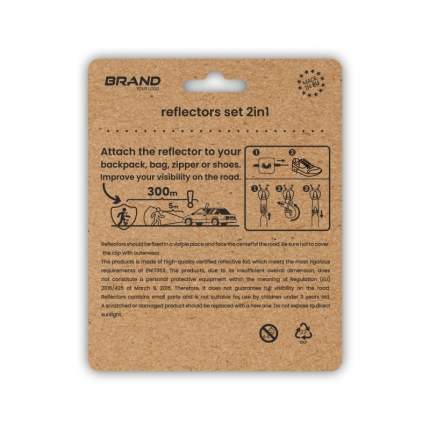 Ciesz się zestawem odblasków 2 w 1, który możesz w pełni spersonalizować pod swoje wymagania! Nasza oferta obejmuje możliwość wykonania spersonalizowanego nadruku na opakowaniu i samych produktach!