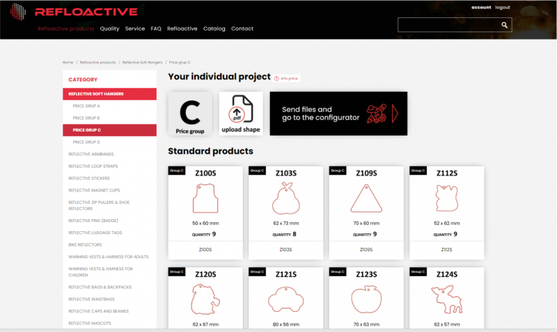Zawieszki odblaskowe produkowane są w 4 podstawowych rozmiarach, które podzieliliśmy na 4 grupy cenowe od A do D. Bez względu na to, jaki kształt zawieszki chcesz wykonać, pamiętaj, że możesz zamówić zawieszki w różnych rozmiarach, co jest ściśle związane z ceną. Dlatego przy ustalaniu ceny dla zawieszek, naklejek itp. aby upewnić się, że wybrana jest cena z danej grupy (przybliżony rozmiar), ponieważ cena po prawej stronie konfiguratora ulega zmianie.